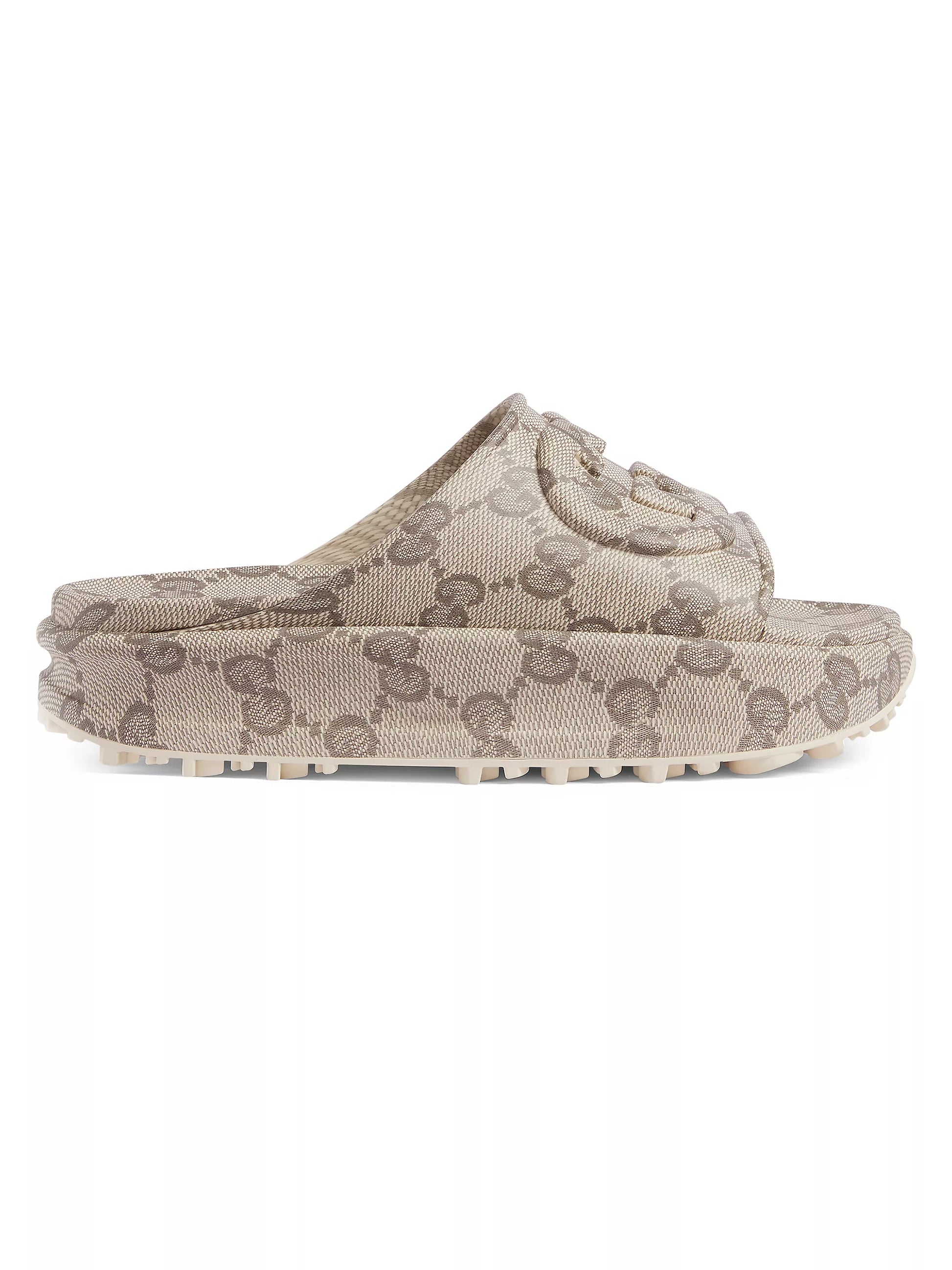 The iconic GG motif decorates Gucci's Miami slides. This pair features a padded insole and chunky rubber sole.